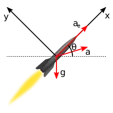 Эту систему уравнений можно было бы решить аналитически, если бы масса ракеты (а с ней — и тяговооружённость) не менялась из-за расхода топлива. Но при необходимости эти уравнения интегрируются численно[7].