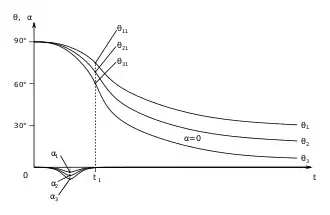 В этом случае при определении траектории есть только одна независимая переменная — угол, на который ракета изначально отклоняется от вертикали, от которого зависит вся дальнейшая траектория. При взлёте в безвоздушном пространстве, например, с Луны, траекторию выгодно делать как можно более настильной, при условии, что она будет проходить на безопасном расстоянии от неровностей рельефа, это позволяет уменьшить гравитационные потери[2]. При взлёте через атмосферу угол отклонения следует делать меньше, а траекторию — более крутой, чтобы выйти из плотных слоёв атмосферы раньше и на меньшей скорости, таким образом уменьшив аэродинамические потери. Кроме того, при полёте в атмосфере нужно также учитывать поперечные аэродинамические нагрузки при отклонении от нулевого угла атаки.