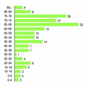| Жителей | 2564 | 2449 | 2113 | 1137 | 724 | 405 | 293 | 278 | 181 |