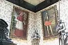 Над оформлением внутренних помещений трудились в течение четырёх лет 36 резчиков по дереву. В дополнение к этому в замок были доставлены предметы антиквариата из Италии и Австрии. Граф Франтишек Гаррах, посещая распродажи старинных европейских имений, приобретал подлинные паркеты и кессонные потолки, мраморные порталы каминов и роскошные обои, скупал антикварные ценности[11][12].