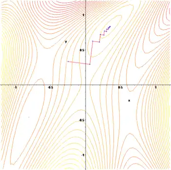 Градиентный спуск — метод нахождения локального минимума или максимума функции с помощью движения вдоль градиента. Для минимизации функции в направлении градиента используются методы одномерной оптимизации, например, метод золотого сечения. Также можно искать не наилучшую точку в направлении градиента, а какую-либо лучше текущей.