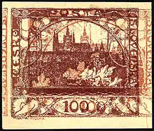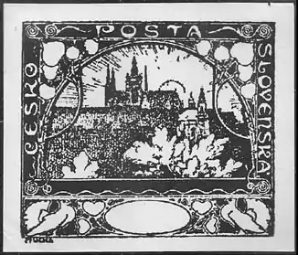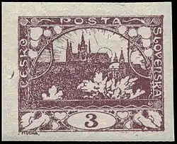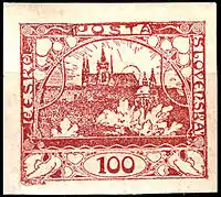 Идею их сюжета — пражские Градчаны — предложил Лешетицкому адвокат Уильям Элиас в беседе на совместной прогулке 1 ноября 1918 года. Предложение было одобрено министром. Вскоре им стало известно, что президент Клуба чешских филателистов (Klub českých filatelistů) Ярослав Шула (1863—1927) чуть ранее уже предлагал разработать эскизы чехословацких марок художнику Альфонсу Мухе. Ярослав Лешетицкий и Ярослав Шула снова связались с Мухой, в результате с последним был заключён соответствующий договор[15][16].