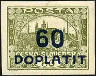 С 1920 по 1927 год неиспользованные тиражи серии «Градчаны» получали «вторую жизнь»: с помощью надпечаток новых номиналов и слова Doplatit они были превращены в доплатные марки. Их вывели из обращения в августе 1928 года. Также, помимо официальных, известны несколько местных и частных надпечаток, в частности, благотворительные доплатные надпечатки в пользу образованного в 1919 году Чехословацкого Красного Креста[16].