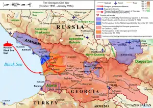 | Причина | Свержение президента Грузии Звиада Гамсахурдии и стремление его сторонников восстановить его на посту главы государства | ||