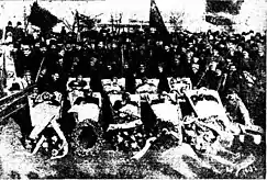 | Файл:Конференція Бахмут 1914.jpg Делегаты первой конференции Советов рабочих и крестьянских депутатов Донбасса. Бахмут, март 1914. | ||||