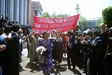 Товарищи! Считаем, что часть населения республики считает сегодняшнее правительство республики незаконным и выражает недоверие. Мы, члены Президиума Верховного Совета и Правительство республики заявляем о сложении своих полномочий, чтобы дать возможность народным депутатам избрать новый состав Президиума Верховного Совета и Правительство республики на очередной сессии Верховного Совета[35].
