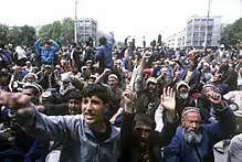 Спустя несколько часов после этого группы молодых людей, объединяемые термином «молодёжь Душанбе», захватили телецентр и передали его под контроль оппозиции. Вооружённые столкновения за овладение ключевыми правительственными зданиями в Душанбе продолжались весь следующий день. Сторонники оппозиции блокировали транспортные магистрали, а также установили контроль над аэропортом и вокзалом. На их сторону перешли местная милиция, ОМОН и советник президента по военным вопросам генерал-майор Бахром Рахмонов[19]. 7 мая президент подписал с силами оппозиции соглашение, по которому им был предоставлен контроль над 8 министерствами и предусматривался роспуск гвардии, а полномочия президента существенно ограничивались. Однако ситуация в стране после этого не стабилизировалась. 10 мая сторонники оппозиции двинулись к зданию Комитета национальной безопасности, где предположительно находился президент, требуя, чтоб он выступил перед ними. В тот момент, когда люди подошли к зданию КНБ и начали разбирать заграждения из колючей проволоки, силами безопасности по ним был открыт огонь, в результате чего погибли 14 человек[16]. После этого на площади Шахидон начался новый митинг. На следующий день после этих событий было сформировано Правительство национального примирения, в котором оппозиция получила восемь постов, в том числе несколько ключевых. 16 мая последняя колонна автобусов увезла участников митинга с площади Шахидон в родные кишлаки[14].