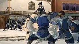 ![]() Южное племя Воды хочет сразиться с северянами, но Корра просит всех успокоиться | |||||