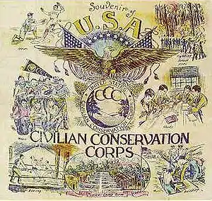 Гражданский корпус охраны окружающей среды[1] (англ. Civilian Conservation Corps, CCC) — программа государственного трудоустройства безработных в рамках «Нового курса» Ф. Д. Рузвельта, действовавшая в 1933—1942 и направленная в основном на сохранение природных ресурсов. Законопроекты, связанные с созданием корпуса, были представлены Рузвельтом в Конгресс США 21 марта 1933 года, и «Закон о чрезвычайных работах по сохранению окружающей среды» (Emergency Conservation Work Act) был принят 31 марта 1933 года.[2] Это была одна из наиболее популярных программ «Нового курса», действовавшая во всех штатах, а также на территориях Гавайских островов, Аляски, Пуэрто-Рико и Вирджинских островов. Хотя программу осуществил Рузвельт, сама идея принадлежала республиканскому сенатору Джеймсу Казинсу (James Couzens) из Мичигана, которому, в свою очередь, предложил её в своём письме избиратель Арчибальд Сан из Детройта.