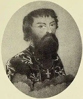 ![]() Портрет первой половины XVIII века, на котором предположительно изображён Иван Грамотин | |
