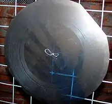 Звук с помощью специальной аппаратуры преобразуется в механические колебания резца (чаще всего сапфирового), который нарезает на слое материала спиральную звуковую дорожку[34]. На заре грамзаписи (по меньшей мере до 1940 года) дорожки нарезались на воскоподобном веществе[35], впоследствии — на слое нитроцеллюлозного лака, нанесённого на алюминиевый диск. В конце 1970-х годов фирмой Teldec была разработана технология DMM (англ. Direct Metal Mastering), согласно которой дорожки формируются на тончайшем слое аморфной меди, покрывающем идеально ровную стальную подложку. Это позволило значительно повысить точность воспроизведения записанного сигнала, что привело к заметному улучшению качества звучания фонографических записей. Данная технология применяется и по сей день.