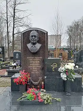 Умер 12 мая 2017 года после тяжелой продолжительной болезни[2]. Похоронен в Санкт-Петербурге на Серафимовском кладбище [3] (Коммунистическая площадка).