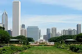 Центральную часть Грант-парка занимает Букингемский фонтан, один из крупнейших фонтанов в мире[19]. В стиле рококо и в виде свадебного торта фонтан был посвящён в 1927 году в качестве подарка городу от Кейт Стёрджес Букингем в память о её брате Кларенсе. Фонтан работает с апреля по октябрь с водными дисплеями каждые 20 минут и световым и водным дисплеем с 8:00 до 23:00.