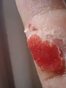 Грануляционная ткань или грануляции (от лат. granum «зерно») — молодая соединительная ткань, образующаяся при процессах заживления дефектов в различных тканях и органах[1]. Развитие грануляций — приспособительный процесс, который содействует заживлению ран и язв, организации и элиминации инородных тел и нежизнеспособных тканей.
