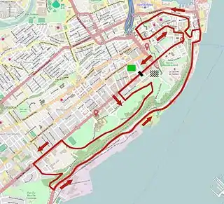 Сам круг, из которого состоит маршрут, пролегает в Старом Квебеке и включает четыре премиальных подъёма на которых разыгрывается горная классификация гонки. Дистанция хорошо подходит для горняков и панчеров, так как финиш гонки, расположенный на исторической улице Grande Allée, совпадает с вершиной последнего подъёма со средним градиентом 4%. После старта и первых четырёх километров гонщиков ждёт технический спуск с Côte Gilmour протяжённостью около километра с градиентом более 10% и двумя левыми поворотами на 90 градусов каждый. После этого трасса идёт по бульвару Шамплейн вдоль реки Святого Лаврентия где предстоит преодолеть 4 км по равнине подверженных ветру. После этого начинаются категорийные подъёмы. Общий вертикальный подъём за круг составляет 186 метров.[3][4]