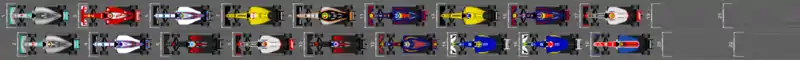 ![]() Расположение машин на стартовой решётке гонки |