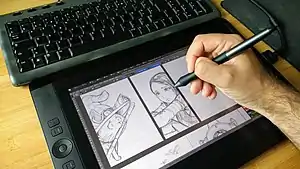 Графи́ческий планше́т (от англ. graphics tablet или graphics pad, drawing tablet, drawing tab, digitizing tablet, digitizer — дигитайзер, диджитайзер) — устройство для ввода информации, созданной от руки, непосредственно в компьютер. Состоит из пера (стилуса) и плоского планшета, чувствительного к нажатию или близости пера. Также может прилагаться специальная мышь.