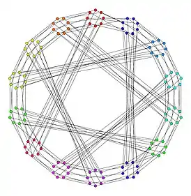 Граф Любляны гамильтонов и может быть построен из LCF-кода : [47, -23, -31, 39, 25, -21, -31, -41, 25, 15, 29, -41, -19, 15, -49, 33, 39, -35, -21, 17, -33, 49, 41, 31, -15, -29, 41, 31, -15, -25, 21, 31, -51, -25, 23, 9, -17, 51, 35, -29, 21, -51, -39, 33, -9, -51, 51, -47, -33, 19, 51, -21, 29, 21, -31, -39]2.