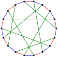 Граф Паппа, раскрашенный для выделения различных циклов.