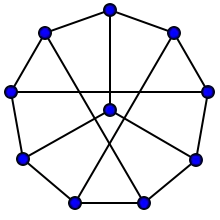 - имеет радиус 2 и диаметр 2. Это наибольший кубический граф с диаметром 2[13]
