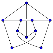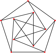 - является наименьшим кубическим графом с обхватом 5. (Это единственная -клетка. Граф имеет только 10 вершин, поэтому он является единственным -графом Мура.)[12].