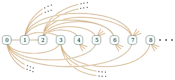 Радо брал неотрицательные целые числа в качестве вершин графа. Ребро соединяет вершины x и y при (x < y), если x-ая цифра двоичного представления числа y не равна нулю.