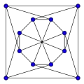 Граф не является вершинно-транзитивным — группа автоморфизмов имеет только одну орбиту вершин длиной 8 и одну длиной 4.