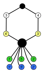 Циклы могут накладываться или не иметь общих элементов, кроме единичного. Граф циклов показывает каждый цикл в виде многоугольника.