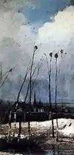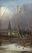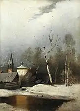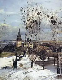 ![]() Пейзаж с церковью и колокольней (начало 1870-х, ГТГ) | ![]() Грачи прилетели (Русский музей) | ![]() Грачи прилетели (этюд, 1871, ПОКГ) | ![]() Грачи прилетели (1879 или 1889, НГХМ) |