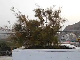Tamarix senegalensis — крупный ветвистый кустарник или небольшое дерево, достигающий 2—5 м высоты. Листья изумрудно-зелёные, очень мелкие, похожие на таковые хвойных растений. Соцветие состоит из 20 бледно-розовых мелких цветов около 1 мм. В Кабо-Верде это называется tarrafe, а родственное название tarrafal было присвоено ряду населённых пунктов страны (город Таррафал-де-Сан-Николау, посёлок Таррафал)[3].