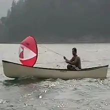 Туристические каноэ также могут оборудоваться небольшим парусом и использовать для перемещения энергию ветра.