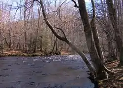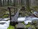 Тсуговый лес (англ. hemlock forest) произрастает на кислых почвах по берегам ручьёв на влажных, тенистых и зачастую крутых склонах в нижнем и среднем поясе гор на высоте до 460—1370 м (1500—4500 футов) над уровнем моря[45]. По оценкам специалистов, на территории парка до настоящего времени сохранилось около 3000 акров (~1200 гектаров) реликтового тсугового леса. Его основная образующая порода — тсуга канадская с гигантскими, до 45 м высотой, стволами. В нижней части парка древесная флора леса более разнообразна, наряду с тсугой здесь можно встретить платан западный и некоторые другие виды. В лесу среднего возраста в его кроне могут доминировать также тюльпанное дерево, клён красный и берёза вишнёвая, однако с возрастом тсуга в связи с более высокой теневыносливостью и долговечностью постепенно вытесняет другие виды верхнего яруса. Отдельные деревья тсуги канадской могут присутствовать также в более разнообразном аппалачском лесу[46][47][48].