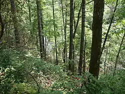 Растительность верхнего яруса представлена многочисленными мезофитами — липой американской, клёном сахарным, клёном красным, конским каштаном жёлтым, буком крупнолистым, тюльпанным деревом, халезией каролинской (Halesia carolina), берёзой вишнёвой, магнолией длиннозаострённой, ясенем американским, черёмухой поздней. Нижний древесный ярус разрежён, здесь, в частности, можно встретить кизил цветущий (Cornus florida), граб каролинский, магнолию трёхлепестную, магнолию Фразера (Magnolia fraseri), хмелеграб виргинский, клён колосистый, клён пенсильванский, азимину трёхлопастную[35][36][38].