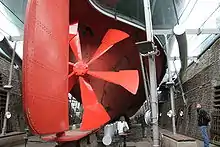 Главный вал, изготовленный на заводе «Mersey Iron Works» в Ливерпуле, стал самой крупной деталью силовой установки. Вал имел длину 21 м и диаметр 71 см. Для облегчения в центре вала было высверлено отверстие диаметром 25 см, через которое прокачивалась вода для охлаждения. На каждом конце главного вала находились два вторичных соединительных вала: под машиной — длиной 8,5 м и диаметром 41 см, у винта — длиной 7,6 м и диаметром 41 см. Общая длина трёх валов достигала, таким образом, 40 м, а общая масса — 38 т[27]. Передаточное отношение от машины к валу составляло 3, то есть винт вращался с частотой 54 об/мин[33]. Первый винт имел шесть лопастей и был создан Брюнелем[34]. Он имел диаметр 4,9 м и шаг 7,6 м[35].