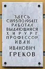 - Грекову И.И., мемориальная доска. Санкт-Петербург. Энциклопедия. Комитет по культуре Санкт-Петербурга. Дата обращения: 15 января 2013.
