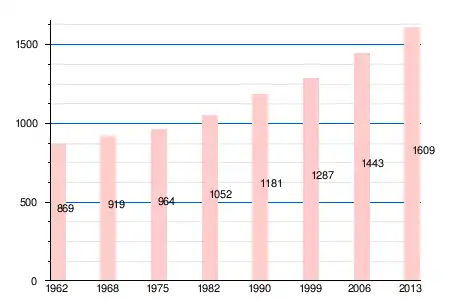 Население коммуны в 2011 году составляло 1587 человек[6], в 2012 году — 1629 человек[7], а в 2013-м — 1609 человек[5].
