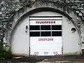Scritta trilingue (dall'alto in basso: tedesco, italiano, francese) alla stazione dei Vigili del fuoco.