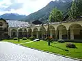 Il sagrato della chiesa di San Giovanni Battista, su Obre Platz, con le cappelle delle stazioni (d'Gheimnisse)