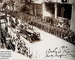 Монархистская «Народная партия» провела предвыборную кампанию 1920 года под лозунгом «мы вернём наших парней домой». Получив поддержку, значительного тогда, мусульманского населения, на выборах 30 ноября 1920 года победили монархисты. Победа монархистов нанесла неожиданный и страшный удар внешнеполитическим позициям Греции и стала роковым событием для греческого населения Малой Азии. Союзники предупредили, что в случае возвращение в Грецию германофила короля Константина они прекратят финансовую помощь[9]:345 и заморозят кредиты[27].
