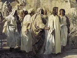 Сюжет картины связан с историей о Христе и грешнице, описанной в Евангелии от Иоанна (в трёх синоптических Eвангелиях этот рассказ отсутствует)[25]. В произведении Семирадского трактовка сюжета значительно отличается от традиционного евангельского варианта, в котором женщина, уличённая в прелюбодеянии, была насильно приведена к Христу фарисеями и саддукеями (в Новом Завете часто используется выражение «фарисеи и книжники»); согласно законам Моисея, грешница должна была быть побита камнями[26].
