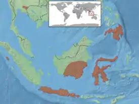 Вид распространён на Андаманских и Никобарских островах (Индия), Филиппинах, островах Калимантане, Яве, Бали, Сулавеси, Каракелаг, Салибабу, Ниас, Сингкап (Индонезия).