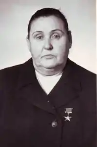 - Указом Президиума Верховного Совета СССР от 7 марта 1960 года удостоена высокого звания Героя Социалистического Труда с вручением ордена Ленина и медали «Серп и Молот» (как бригадир откатчиков шахты «XX лет РККА» треста «Шахтантрацит»).