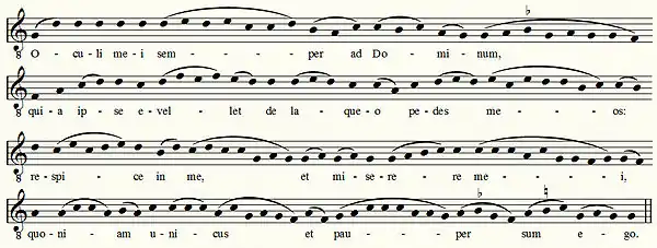 Ладово-интонационная основа григорианского пения — восемь модальных ладов, называемых также церковными тонами. Отсюда ещё один принцип классификации плавных распевов — по тону, к которому они приписаны, например, «магнификат первого тона», «магнификат второго тона» «магнификат третьего тона» и т. д., «градуал Ex Sion пятого тона», «тракт Qui habitat второго тона», «интроит Oculi mei седьмого тона» и т. д.
