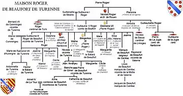 - Его дядя Климент VI приходился родным братом кардиналу Hugues Roger, кузеном (далее генеалогического древа нет) кардиналам Aymeric de Chalus; Gérard de la Garde; Guillaume d'Aigrefeuille, кузеном или дядей кардиналам Adhémar Robert; Pierre de Cros и его брату Jean de Cros, и их родичу псевдокардиналу, также носившему имя Pierre de Cros; Gilles Aycelin de Montaigu, дядей кардиналам Guy de Malsec; Guillaume d'Aigrefeuille и его брату псевдокардиналу Faydit d'Aigrefeuille; (далее родство прослеживается яснее) Bernard de la Tour (возможно, через брак своей племянницы Элизы, сестры Григория XI), племянником которого стал Jean de la Tour; дядей кардиналу Raymond de Canilhac (возможно, через сына своего брата Гийома III, получившего титул владетелей Канильяков). Сестра Климента Гильометта была матерью кардиналам Pierre de la Jugié и Guillaume de la Jugié, а его вторая сестра Альмоди родила кардинал Nicolas de Besse.