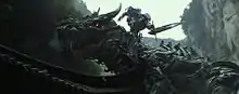 В фильме вооружён огромной булавой, вдобавок его кулаки могут превращаться в шипастые палицы. Обладает огромнейшей физической силой. В режиме робота его рост превышает рост Оптимуса Прайма почти в 3 раза. В режиме динозавра может дышать огнём и дробить зубами даже самую прочную броню.