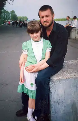 ![]() Валерий Гришковец с дочерью. 1998 г. | |