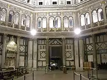В баптистерии уже находилось три саркофага: в одном из них был похоронен епископ Раньери (умерший в 1113 году), два других были изготовлены ещё в римское время и использованы вновь в средние века[43]. Но гробница высотой 7,32 м была самой высокой в баптистерии, а в своё время и во всей Флоренции[4]. Захоронений в самом Дуомо мало, и они представляют собой скорее исключения — например, могила Альдобрандино Оттобони[5].