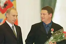 В 2001 году Указом Президента Российской Федерации за работу в условиях боевых действий на Северном Кавказе[10] награждён Орденом «Мужества», который глава государства В. В. Путин вручил лично в Кремле[11][12].