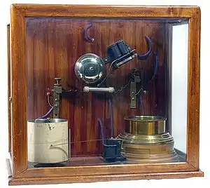 В 1889 году Оливер Лодж, экспериментируя с приборами из опытной установки Герца, использует в качестве приёмника не петлю, а вибратор, как в передатчике. Для повышения чувствительности приёмника он так уменьшает искровой промежуток, что после электромагнитного воздействия электроды вибратора приёмника замыкаются (сцепляются). Для размыкания электродов требовалось лёгкое встряхивание. Подключив к электродам вибратора источник питания и электрический звонок, Лодж обеспечил звуковую индикацию принятой электромагнитной волны[3][4].