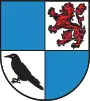 Характеристика герба: "Отделанный синим и серебряным цветом; Поле 2 - поднимающийся красный лев с выбитым языком, поле 3 - черная ворона"“